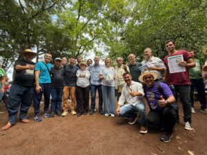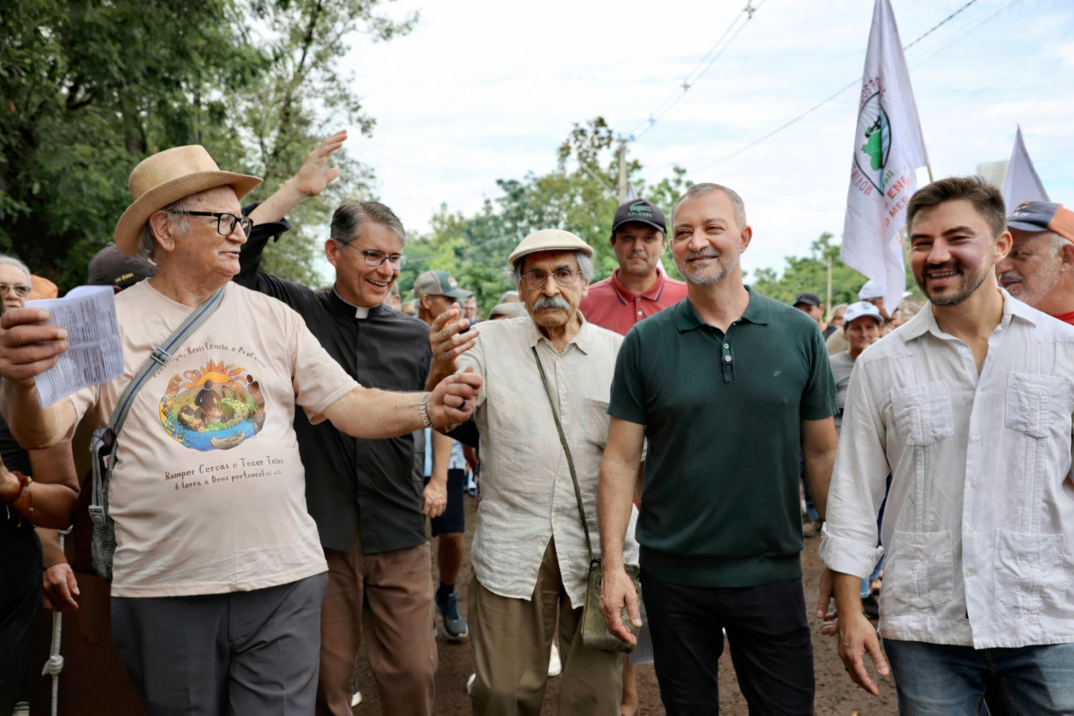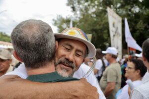 “Eu tenho imensa alegria de estar aqui outra vez. A Romaria da Terra é um pilar na minha história. Comecei essa caminhada ainda menino, de mãos dadas com meu pai, Adão Pretto e minha mãe Otília Pretto. Hoje, ter a oportunidade de seguir ao lado de lideranças como Olívio Dutra e de tantos romeiros anônimos que, ano após ano, vêm refletir e lutar pelas nossas pautas, reforça o que ela representa, um compromisso de vida com a ecologia integral e a terra sem males, além de me trazer lembranças familiares que carrego no coração”, ressaltou Edegar, lembrando ainda de Frei Sérgio em um momento especial da Romaria, a distribuição das mudas de árvores. “A muda de Araçá que recebi plantarei lá em casa, em memória a este grande ser humano e brasileiro”, disse.