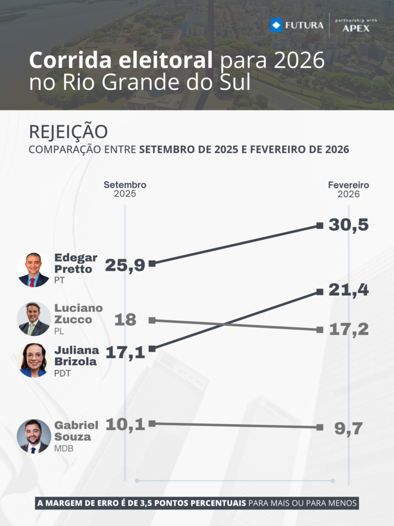 “Desde a confirmação da nossa pré-candidatura ao governo do Estado, percebemos um movimento crescente de apoio e engajamento. Os números da pesquisa do Instituto Futuro vêm ao encontro dessa percepção e nos mostram que estamos no caminho certo”, afirma Edegar Pretto.