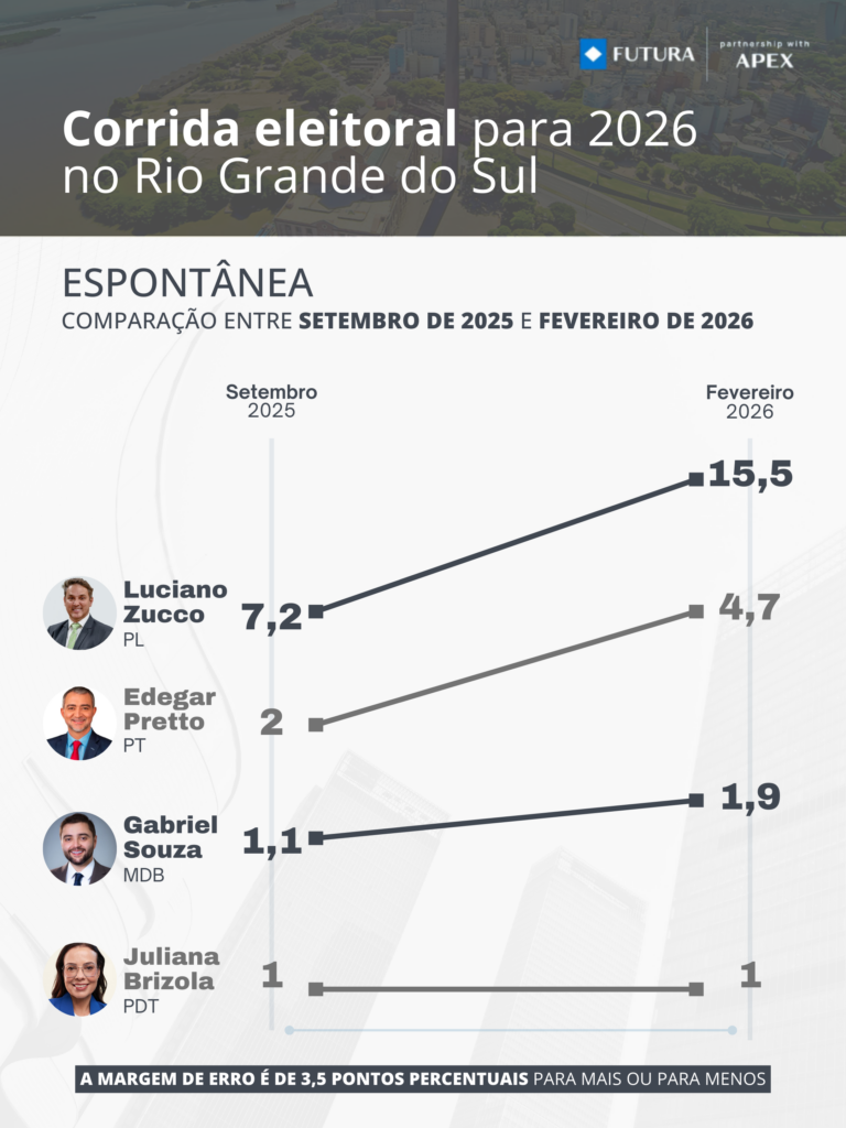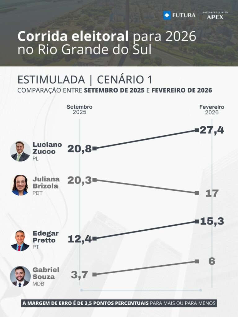 “Desde a confirmação da nossa pré-candidatura ao governo do Estado, percebemos um movimento crescente de apoio e engajamento. Os números da pesquisa do Instituto Futuro vêm ao encontro dessa percepção e nos mostram que estamos no caminho certo”, afirma Edegar Pretto.